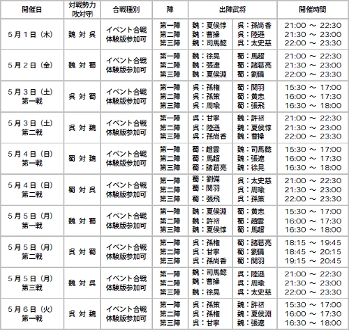 4月27日(日) 20:00 - 21:30 蜀 対 魏
